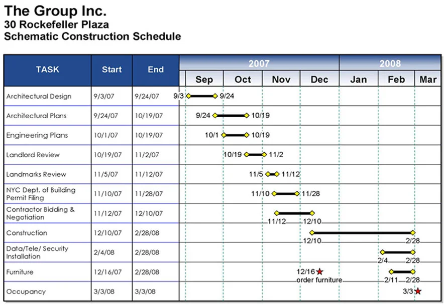 In order to effectively manage the time frame allotted for a comprehensive schedule must be established setting forth critical milestones within the respective completion date.